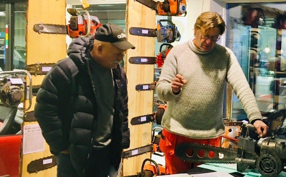 På veterandagen vil Klanderud vise fram og fortelle litt om utviklingen av motorsagene. I egen samling har han ca 150, men tar bare med noen til Aur! Han har en god fortellerevne og blander ofte med noen fornøyelige historier. Kåseriet på Aur starter kl 14.